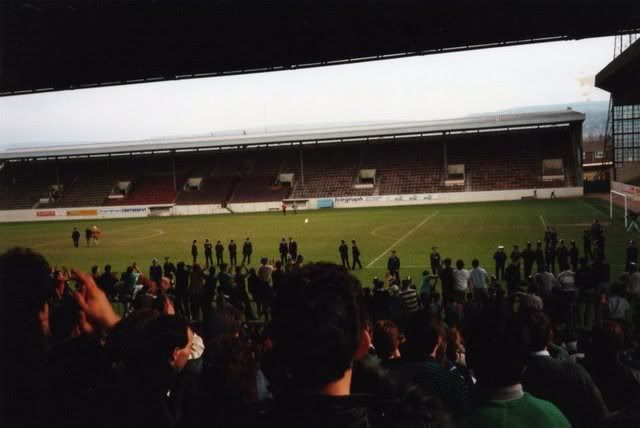 Those pics bring back memories, was only in my early teens. Was in their grandstand and was surprised to see how many City were on the terrace. KO was delayed and we had a kick around on the pitch with the free footballs and then tried to make it across the pitch to the terrace, only a handful made across it so was in the seats when they invaded the pitch and made there way over to the 30 or so Cardiff in their grandstand.
