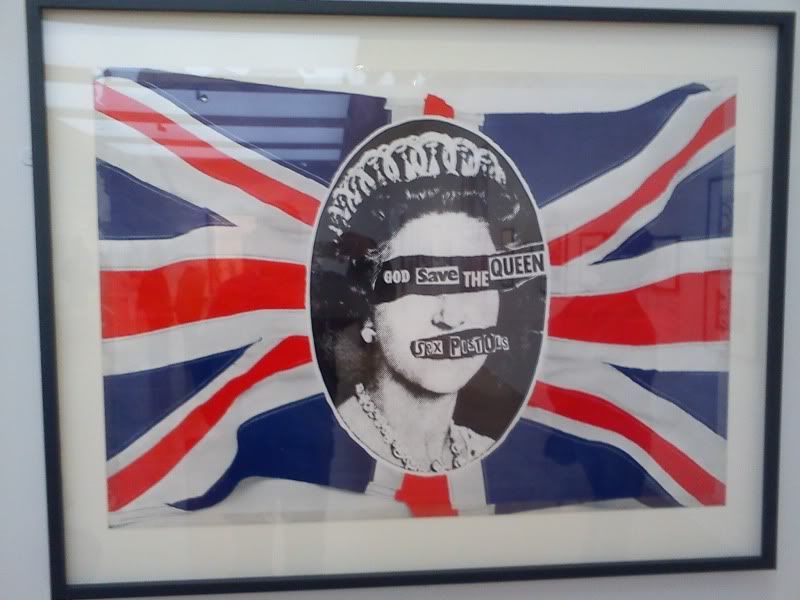 Strange set-up there, with the Queen of England bit, because it was mostly classic photos by Annie Leibovitz, Norman Parkinson etc, but then a couple of anti-royalist things such as the above and stuff about a demo in Aberystwyth against Queenie when she visited a while back.